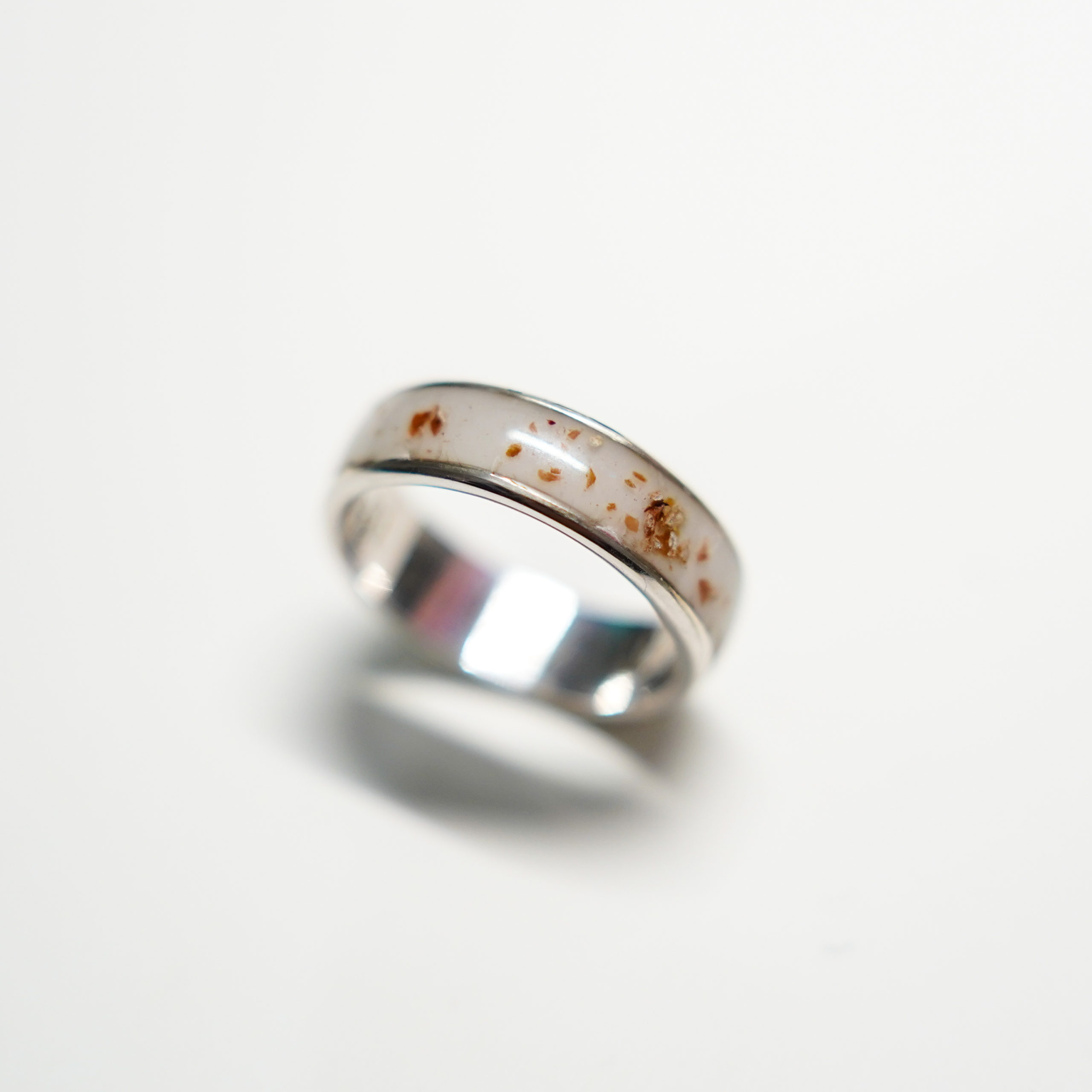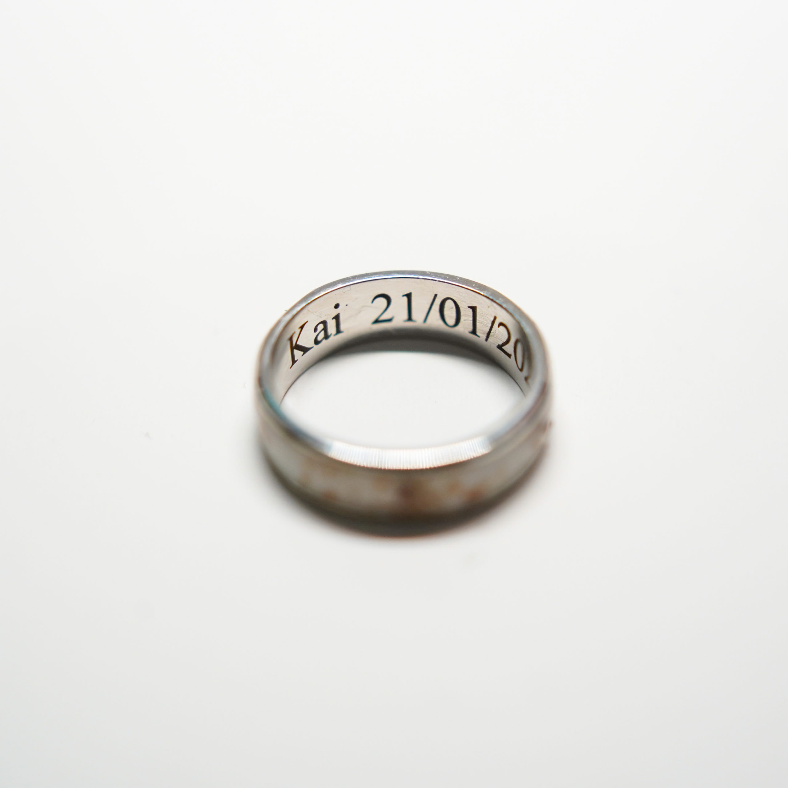 Alianza hecha a medida en plata de primera ley, lleva leche y cordón umbilical pero tambien puede llevar pelito o cenizas de cremación. Se puede hacer un grabado en el interior
