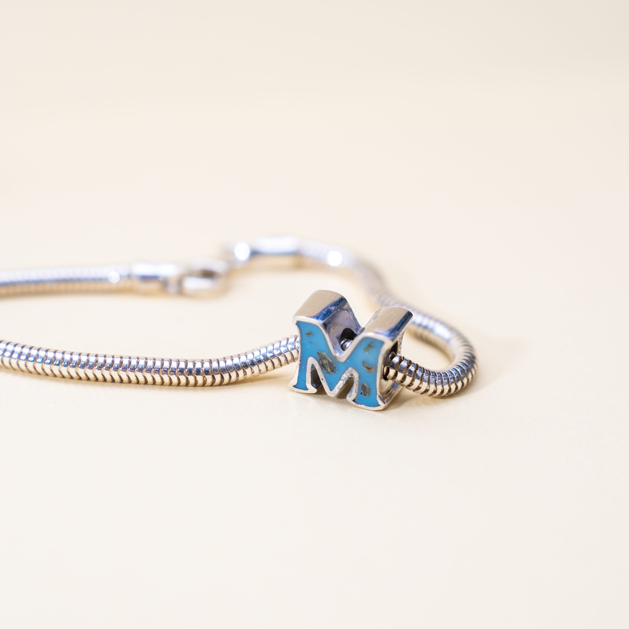 Charm inicial, es un charm compatible con Pandora y hecho a medida. Tiene dos caras y se pueden poner muestras en ambas