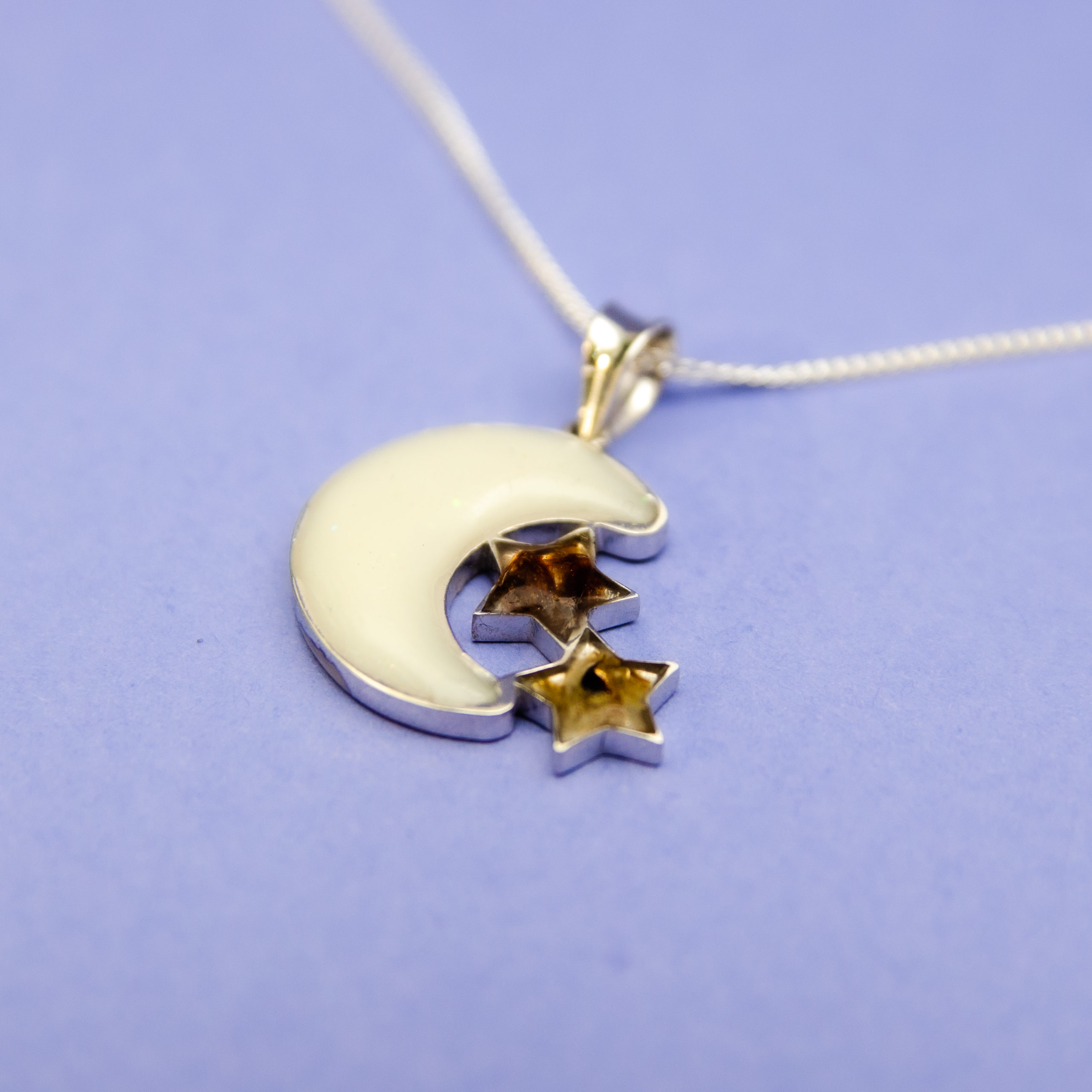Colgate Luna y Estrellas hecho a mano en plata de primera ley, puede grabarse en la parte trasera.
