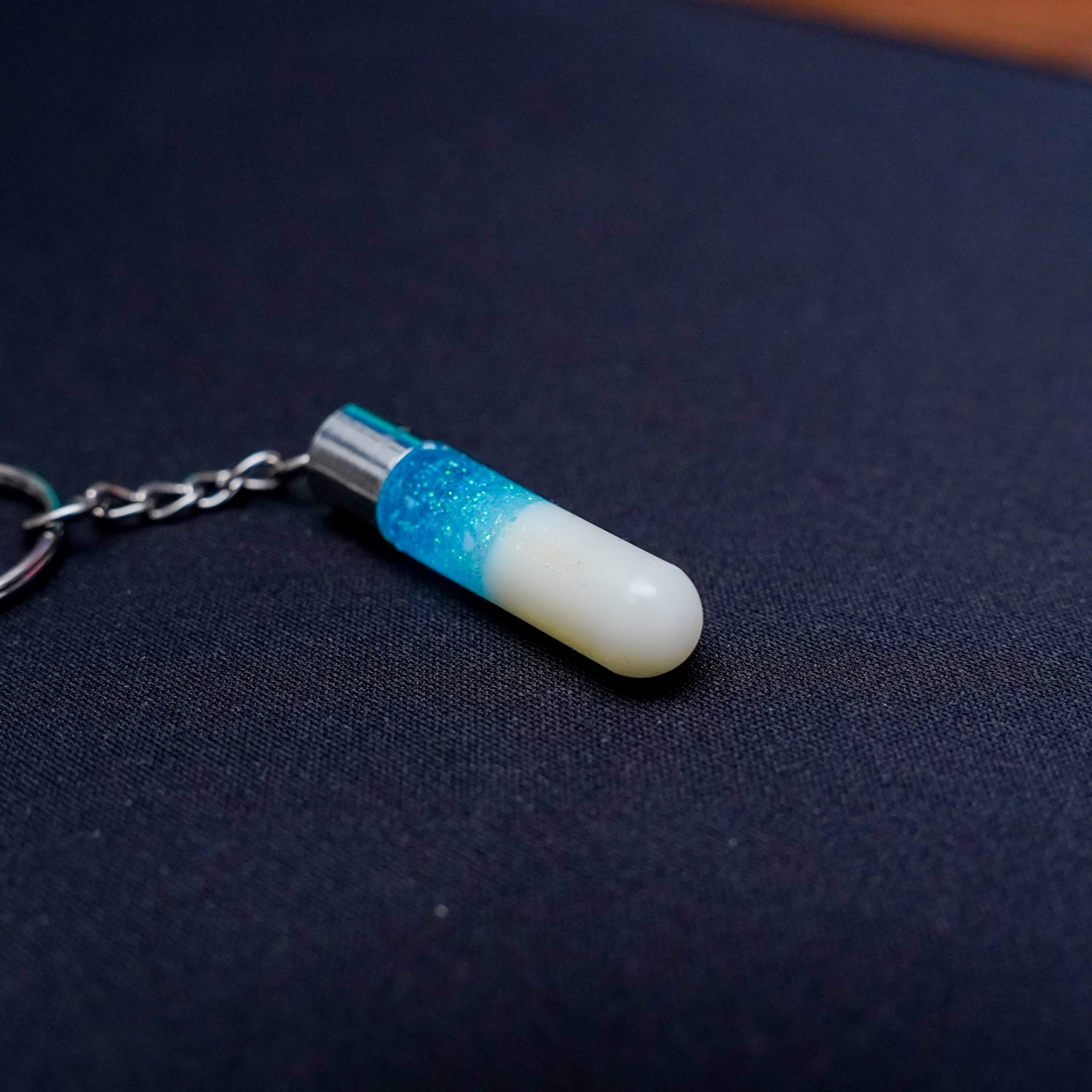Llavero con forma de bala con leche materna, puede llevar tambien pelito, cordon, cenizas de cremación, etc…